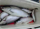 The Reel Deal on Click here to see Capt. John's Reel Methods that produce Brown Trout The month of April is the window of opportunity to catch Brown Trout. Manistee rates as the home of the State Record Brown. This Giant Fish weighed in at almost 35 pounds and was caught in 2000. We will be fishing the scenic shoreline of Lake Michigan with planer boards close to the beach. Light tackle, 15 lb. test with stick baits (Rapalas & Bombers) along with spoons have produced many limit catches. In the past we've averaged as high as 14 browns per charter. In 2001 we boated 7 Master Angler Sized (over 16 lbs.) fish with the largest pulling the scale down to 22 pounds! Manistee County is the Best Brown Trout Fishing in the entire Great Lakes Fishery and we've got the State Record to prove it! "No Brag just Fact!!" Because of the limited season on Brown Trout (month of April) available dates are generally hard to come by. So, if you're interested in catching Trophy Sized Trout, book early to insure your date successfully. Keep in mind the weather can be cool but the fishing is hot. Also, my 28' Cherokee Boat is enclosed and heated. We will not be fishing in rough water due to the close proximity to the beach. Full or Half Day Charters can be accepted on weekends, but full day trips are preferred due to the amount of travel time in getting away from the crowds. Browns are notoriously spooky by nature and will not bite under heavy fishing pressure, as a rule. If you're suffering from cabin fever this is a good way to start making plans to cure it! Hey, just give me a call to make your haul, my answering machine is always on duty. Plus you'll be eligible for special off season room rates at the Micro Tel in Manistee. To see what your room looks like Click here to see room Manistee holds State Record on Brown Trout Has been recorded for the year of 2001 in the Master Angler Program administered by the Department of Natural Resources. Angler Larry E. Curtis of Reed City, Michigan caught a record-setting brown trout weighing in at 34.62 pounds and measuring 40 1/2 inches in size on April 5. Curtis was trolling along the coastline of Lake Michigan offshore of Manistee County when he reeled in his record catch. Tom Rozich, Department of Natural Resources fisheries biologist at Cadillac, identified the fish. The previous brown trout record was a 34.45 pound brown trout, also taken from Lake Michigan waters off Manistee. Please keep in mind, the duration of Brown Trout Season is a short one and the way the weather has been this year I expect it to be outstanding to say the least!" The boat we use at this time of the year is my completely enclosed 28' Cherokee Sport Fisherman and it's equipped with 2 heaters to ward off the chill in the mornings or late evenings. I recommend that you dress warmly to enjoy the Premiere Brown Trout "Hot Spot" in Michigan. To see exact results from every charter with no embellishment. This is a "tell it like it is" standard of honesty that Capt. John King is known for. Proof can be found in the archived links to photos that accompany every charter. While other charter operations might give you a bunch of "pie in the sky" unfounded promises. Here, you can see and read the precise verification of the whole story when it comes to fishing with King's Charter Service, we serve only the reel facts! Click here for 2000 Charter Results Click