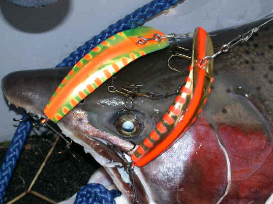 STRONACH - Row, row, row your boat was a popular song many years ago, and the same words were considered great steelhead fishing advice 40 years ago, when Manistee Lake anglers trolled at rowing speed for steelhead. Little has changed since then. This lake at Manistee and nearby Stronach is considered one of the state's best fall steelhead waters. Hit it just before freeze-up, and chances are very good a trolling fisherman can hook into a high-stepping steelhead. I've caught fish here up to 19 1/2 pounds. Forty years ago, anglers used to row their bows around Manistee Lake to get the trolling speed just right. Fishermen today can row a small aluminum boat or use a small electric trolling motor or outboard motor to bring the trolling speed down to the putt-putt pace preferred by big steelhead. This lake, formed by the Big and Little Manistee rivers, comes into its own in mid-November just before the lake ices over. Steelies, fresh from Lake Michigan, move up the channel from the big lake and enter Manistee Lake. Some then move up the Big Manistee while others ascend the Little Manistee. Excellent boat launches are found in Manistee and Stronach, and there is little need to travel too far from either boat launch site. Both ramp locations are within 200 yards of some of the best trolling grounds. Steelhead hold in the lake for varying periods of time. Some move directly up one of the rivers, although many winter over in Manistee Lake before making spring spawning runs up the rivers. The top lure is an X-4, X-5, U-20 or T-4 FlatFish in chrome or pearl colors. Fluorescent red with black spots, gray pearl, orange with red spots and silver-blue colors also produce, and whenever possible, use lures with small treble hooks rather than two large trebles. The smaller hooks seem to hook and hold more fish. Bait-casting or spinning reels stocked with 10- or 12-pound monofilament tied directly to the lure's line tie are best. Rods in the 8 1/2 to 9 1/2-foot lengths are adequate. The secret to steelheading success is to troll slowly. FlatFish cannot be trolled fast or they will flip over and pop to the surface. The slower the trolling speed, the better the lures will work. Anglers can effectively troll two or three lures about 30 yards behind the boat. Small in-line planer boards can be very effective here. Hotspots for this fishery are the south end of the lake off the Little Manistee River between Packaging Corporation of America on the west side of the lake and the Stronach boat launch site on the east side. Another hotspot is north off the Manistee River mouth. Steelhead can be caught from the river mouth west to the outlet of Manistee Lake where the channel flows downstream to Lake Michigan. Often, but not always, steelhead will hit off the first or second dropoff out from shore. Fall steelies often roll and porpoise on the surface. Make no mistake about it: It's almost impossible to troll too slow. The rod tips should just nod softly as the lures dig in the water, and wood FlatFish seem to produce slightly better than plastic lures but wooden plugs are much harder or impossible to find in sporting goods stores. Test the lures alongside the boat to get the action just right, and it's wise to place rods in rodholders. One thing about this late-season fishery: The angler won't have any trouble determining whether they have had a strike. Set the reel drag so the line will peel off the reel on the strike, but a fish should have to work to get that line. Tighten into the fish, and enjoy a spirited battle. It's one of the finest fisheries at this time of year, and
