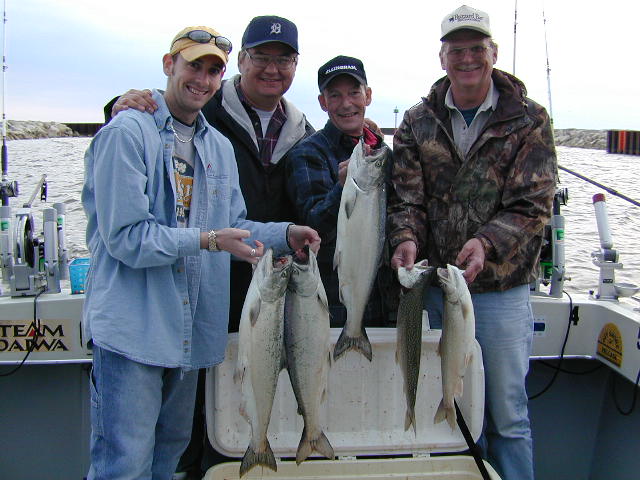 great day by boating 4 Lakers, 1 Steelhead, 1 Coho and 5