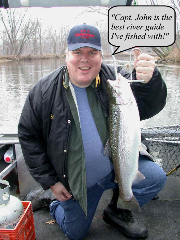 Hey, we all got lucky, because Capt. Jay Frolenko has purchased my RiverMaster jet-boat and river business. He's one heck of a nice guy and has many years of prior knowledge fishing the Big Manistee River. He'll be keeping us informed with updates on river results along with "catch of the day" photos. I like the idea he had a firm