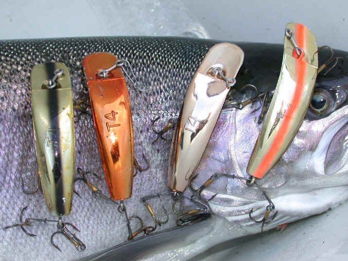 outfit here in Manistee, because the first person I contracted the work to, was taking way too long. I've got my fingers crossed to have it trailer back by Wednesday. 9/12/03 I'm still off center from the loss of my friend George Richey and this goes to show just how fragile life is. George taught me the correct way to fish attractors in 1981 and even how to snell my own double single Salmon hook rigs. He was a huge benefit to me in my early days in the charter business. Ok, I'm on the big pond today and hope the weather is kind enough to let us fish. Check back later for a complete report and hopefully, fresh catch photos.