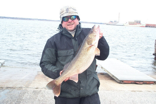 3/16/04  Some monster Walleyes are being caught in Muskegon Lake now.  Reports of fish in the 10 to 12 pound bracket are filtering in. I'd like to thank Joel O. for the photo and update from the Muskegon area.  Click here for 12 lb. Muskegon Walleye