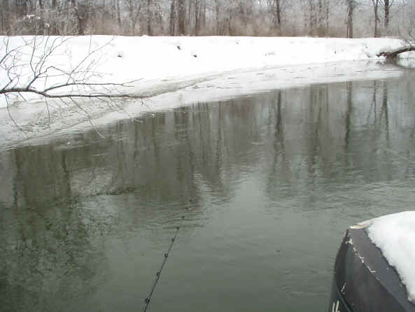 2/5/04  Yeah buddy!, back to the low single digits and lots of snow in our forecast thru this Saturday.  It's impossible for me to get a report on the big river, when hardly anyone is fishing.  I suspect the river is frozen up to Bear Creek at least.  I know the lower end is frozen up tighter than a drum by the M-55 bridge.