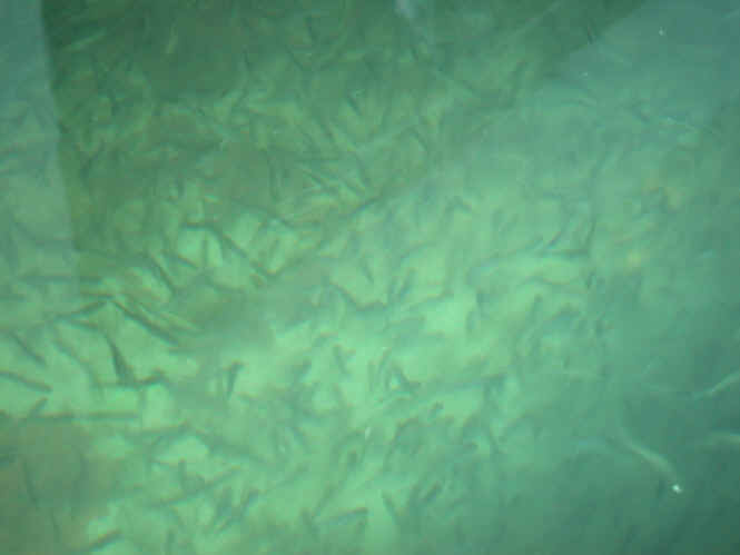 3/19/04   In my travels around northern Michigan a few days ago, I stopped by the Platte River Hatchery.  I knew the hub-bub of the 500,000 dead Salmon would be over and want to pay my little buddies in the rearing pens a social call.  This place always amazes me.  Millions of fish, most named after me.  So, this is kinda like a large family reunion.  Click here for a photo of a bunch of young Salmon, or parr
