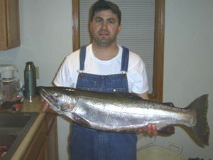 3/29/06  All is extremely well in Manistee County with spring-like weather.  If yesterday and today don't make you think of getting the boat out of storage, you haven't been outside much.  It's simply great to see the happy smiley faces with fresh caught fish from our Great Lakes, rivers and streams!  Click for Andy's Steelhead