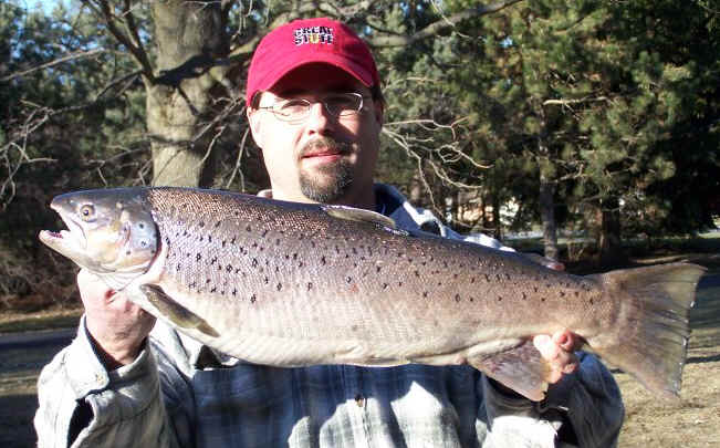 Now, before you get involved in the never-ending "the photo is a Brown Trout" argument, you'd better click here and count the rays in the anal fin!  I've caught 1000s of Browns and maybe 30 Atlantic Salmon from the Great Lakes, and while they resemble one another, there's enough subtle differences to classify each specie.