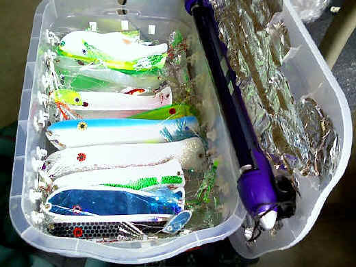 in-demand X-Glows in Frog (flashers and 2 fly meat rigs) and Blue