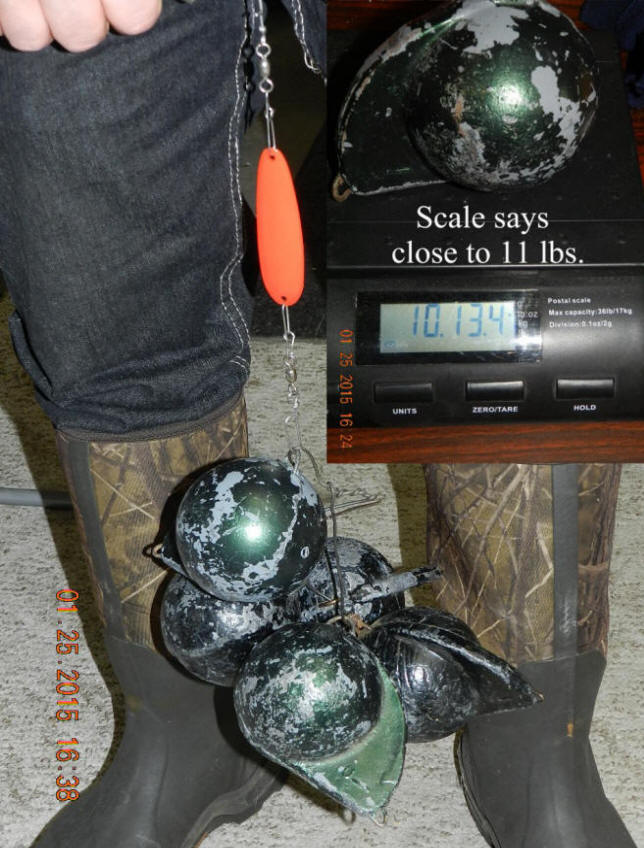 Mambas, or at least get a firm start. 1/12/15 There's an important feature to my new 2015 Salmon Buster™ spoons that's been overlooked. My Lexan™ spoons bend, but do not break, or kink like traditional metal spoons. Today's pic, with considerable force on my part ...shows a SB 4.65 being bent hard and still retaining it shape like nothing happened at all! Click bending Salmon Buster 4.65 1/11/15 Posted a pic of the recent snow for the snowbirds that flew S for the winter. 46 inches is my estimated total for this winter thus far. Click recent Manistee snow