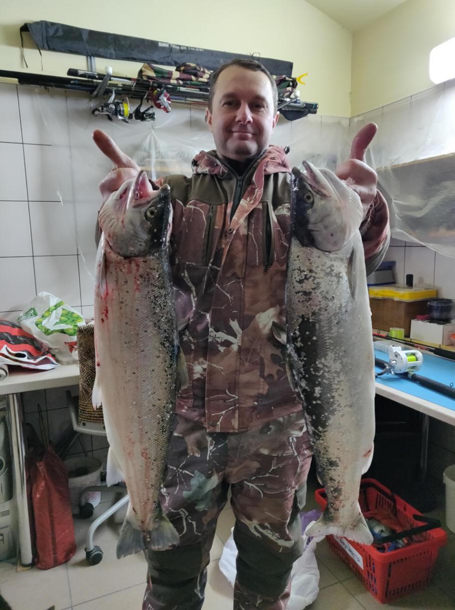 27.93 lb. Atlantic Salmon 114' down, Salmon Buster 4.0 Baltic Sea, Russian Federation