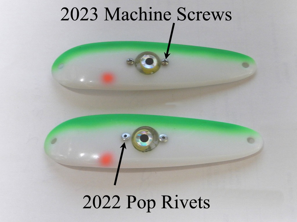For 2023 our LED flashers are no longer pop riveted.  Machine screws and nuts a big step up for replacing a burn out LED light just like our spoons.  Need to update the web page to make this info to potential buyers.