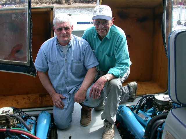 John Johnson and myself re-installed the motors on 4/3/03, then we got whacked with a ice storm.  Being pressed for time, I called Dick Stehle at Cherokee Boats and had the factory finish what we couldn't do on account of the extremely nasty weather.