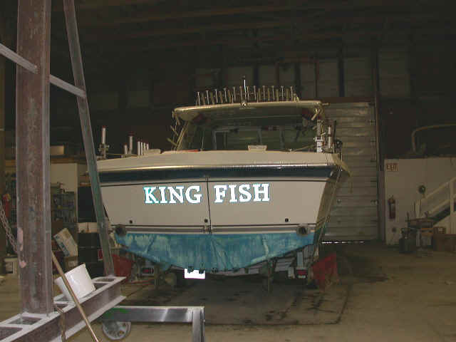 While the boat was at Cherokee in Kaleva, Michigan (10 miles from my house) I decided to have the 15 seasons of bottom paint blasted off and have the 3 step water-tight epoxy bottom paint done at the factory.