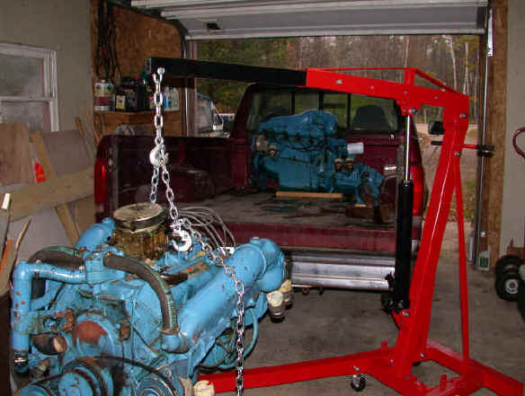 We pulled the Crusaders last mid-October with the help of John Johnson and the ever popular, Warren Knapp (aka "Dottie K").  Bruce B. from Ludington offered his excellent mechanical skills to get my on the right road to re-assembly.  I went the route of re-manufactured long blocks from Pro Power Marine, because of the 2 year unlimited warranty they offered.  My cost on the two new long blocks was in the neighborhood of $4000, including freight.