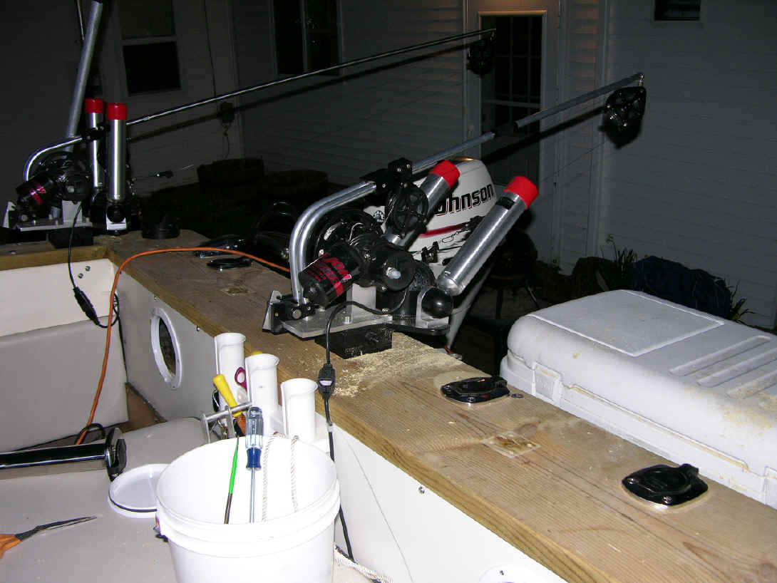 Cleaned up some of the obstacles across the transom i.e. trolling board.  Vertical stand up rod holders were a nuisance/hindrance when it came net time (shown in the before photo).  Just more stuff to get in the way!  Installed flush mounted rod holders to cure this problem and still have a place to stick a rod when needed.  Looks a whole lot cleaner now!  eBay sold the 4 Tite Loc rod holders for me.  So, the new flush mounts didn't cost me a dime.  Trying to keep costs in check.