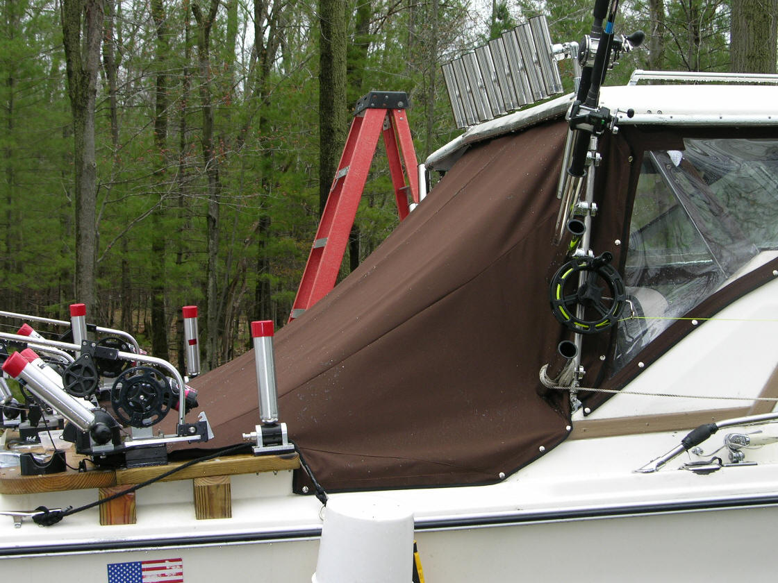 Had Dick B make an aft curtain to keep the rear deck cleaner when parked under trees and the carpet a little dryer.  Carpeting will go someday, but for now budget doesn't allow for sandblasting