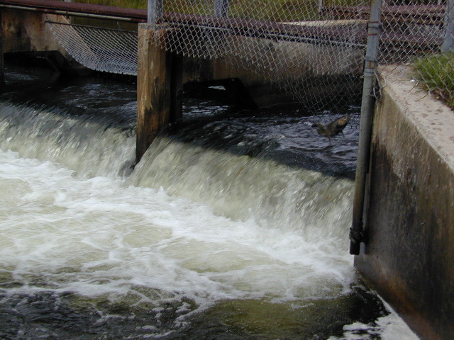 Weir Facts When I was at the weir on 9/22/01, most of the holding pens were pretty full and you can see all the fins sticking up in the photos below of the pens. I consider these Chinooks or Kings to be the smart ones, because they didn't go into my fish box. In the Fall the weir acts as a barrier to the Salmon