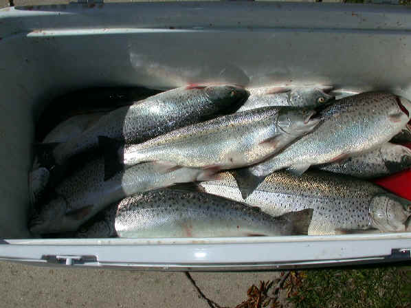 4/30/00 Joe, Lloyd, and Mark Lincoln along with Johansson from Germany tried the waters of Lake Michigan off Saugatuck. They did what they came to do, catch a bunch of fish! 19 in total on a 7 hr. trip is not bad in anybodies book. I'm calling the Coho's we boated "vicious villains" for the way a 3 lb. fish savagely attacks the bait and slashes and burns like Gen. Sherman's March to the Sea. The only thing was we had to throw back 8 Lake Trout that were out of season and a way to small King that is now on his way growing up to a 30 pounder. This was a wonderful way to spend the day, with good company and co-operative fish. A special thanks goes out to Mark for helping out with setting the downriggers and keeping everything in ship shape. 4/29/00 Charter with Mark Dye, Terry Rhodes had to be cancelled due to seas running at 8' or better. I found Terry and Mark a boat for the 30th with Capt. Rocky from Best Chance and they did great. 4/28/00 0n the Paul Fuhs, Steven, and the "2 Steves" Charter we had a grand time on the first Saugatuck Charter of the year!! Calm seas and the fish were on the BITE, now that's a hard combination to equal. I had 2 father-son teams as fisherman and everybody won today. Young Steven aged all of 9 years did a fine job in landing several fish, including a 12 to 14 lb. King with assistance from his Dad, Paul. The "other" younger Steve did just great also showing manners and wisdom beyond his 8 years. Now, that's tribute to his Dad, Steve Senior. The body count for today was 17 fish boated although we released 6 Lake Trout (out of season) and 1 small King. Today's trip is what brings joy to me as a Charter Operator with fine Guests and an awesome outing. 4/24/00 Brad, John, Ross and Brad Riemer met me at 7:00am for some Brown Trout fishing on Lake Michigan. At first it was pretty calm and the bite was slow, then as the wind came up so did the action on the Shoreline Browns. The best spot was off Cooper Creek to Big Point Sable with plenty of eager to strike fish, today's body count was 17 Brown Trout and 1 Lake Trout that was released (18 Fish). The Riemers as a group knew how the put'em in the boat! They only missed a couple of hooked up fish and did super on the rods once the initial excitement of the first double header was over. All in all it was a wonderful a Spring Season on Brown Trout and we ended it on a High Note by LIMITING OUT. 4/23/00 Rick Sloan, Gary, Randy, Megan, and young Tim drove down from Mancelona. This was the second time I tried to get Rick into some decent Brown Trout fishing. Today was a bust with calm seas and no Browns willing to take our offerings. After the best part of a 2 hr. troll in prime Brown Trout territory only 1 fish hit our baits and than the line broke. Seeing the hand writing on the wall we decided to regroup for another day rather wasting time and charter money for lack luster results. Bottom line: the fishing was God awful poor. I don't know what I have to do to get Rick into some real fishing, but I promise you I will! 4/22/00 "Big Jeff" Dixon, Carolyn Nylund and "Quick Rick" Pritchard got off the dock around 7:00am finally. To stay clear of the CROWD I ran the boat 13 miles south toward Big Point Sable and in short order we were into the fish, while not fast and furious the action was steady. Carolyn and "Big Jeff" did an excellent job both landed their limit of Browns plus 2 Coho's and a Laker. "Quick Rick" boated 2 Browns, and a Lake Trout but his 3rd Brown is still swimming off Cooper Creek where misfortune caused 2 of "Quick Rick's" Browns to throw the hook. Incidentally the "Quickster" is not noted for losing fish, he's boated several Kings with Kings Charter in excess of 25 lbs. and knows how to handle a fishing rod! Carolyn for being a first timer did great, landing every fish she had hooked including a Lake Trout that she released. All be it may, it was a wonderful day to spend on beautiful Lake Michigan's shoreline and we landed 12 fish, but we DIDN'T LIMIT OUT on brown trout. 4/21/00 the saga of the wind continues today. First I had to cancel the Big Jeff and Quick Rick am Charter. Then we couldn't get Greg Watson Group out in the afternoon. However it looks like we'll be fishing tomorrow! 4/20/00am & pm Captains Policy: On the evening before I called up Scott Ledger (morning trip) and Rod Vernier (afternoon trip) and cancelled their outings due to predicted weather to ugly to fish in. 30 to 35 knot wind, cold, wet and rainy is not my idea of a good time! Also, it saves these folks a long drive for nothing plus it's still early enough in the season to reschedule. Kings Charter puts a good time ahead of financial gain when it comes to our Guests enjoying themselves!! 4/19/00am Clay "Butch" Polander and David Helka came back for their second serving of Kings Charter after a winter Steelhead Trip last January. Let me tell you fishing was tough and a mean tough! Flat calm water and a East Wind are not conditions to fish for Brown Trout in shallow water, but we pulled the Rabbit out of a Magic Hat and still LIMITED OUT these fine fishermen. We caught only 3 Browns in the first 5 hrs. of the trip, then the fish made up their minds they were hungry and started to hit. In the last hour of the trip we boated 3 more Browns when a 10 to 12 lb. King Salmon decided to mess with Dave. This was a "Red Hot" King Salmon and ran 250 ft. of our 15 lb. test towards Wisconsin with Dave patiently gaining lost line and boating our FIRST DECENT KING of the year. Clay is an excellent Taxidermist and a specialist in freeze drying techniques and can be reached at (313) 388-6266. 4/19/00pm The father-son team of Steve and Irv Bush were on the way out of the harbor at 3pm. After the tough, tough morning I set no store in any fast fishing. So Capt. Lee Bienz and I just put our heads together, bared downed and went fishing. We just got lines set when the first fish we caught made it's last mistake with Irv boating a vividly marked 4 lb. Brow